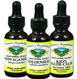 The Nature's Wonderland line of liquid herbal extracts includes a complete selection of Single Herb Extracts plus a complementary line of Liquid Herbal Formulas, which target various specific health needs.
